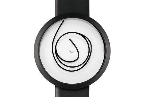 I happened upon this watch in the mall over the weekend and loved how unconventional it is. The inner end of the loop acts as the hour hand, and the outer end is the minute hand. The in-between part seems to move freely, so you have a watch face that looks pretty different each time you look at it.
